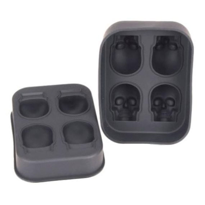 Forma De Gelo Caveira..Para fazer gelo ou chocolate em formato de caveiras..O seu drinque com um toque especial..Cada forma faz 4 caveiras 4,6 x 4 cm..Confeccionada em silicone flexível, suporta até 240 graus centígrados (não expor diretamente as chamas).Dimensões 10 x 8 x 4,5 cm. marca:Clink