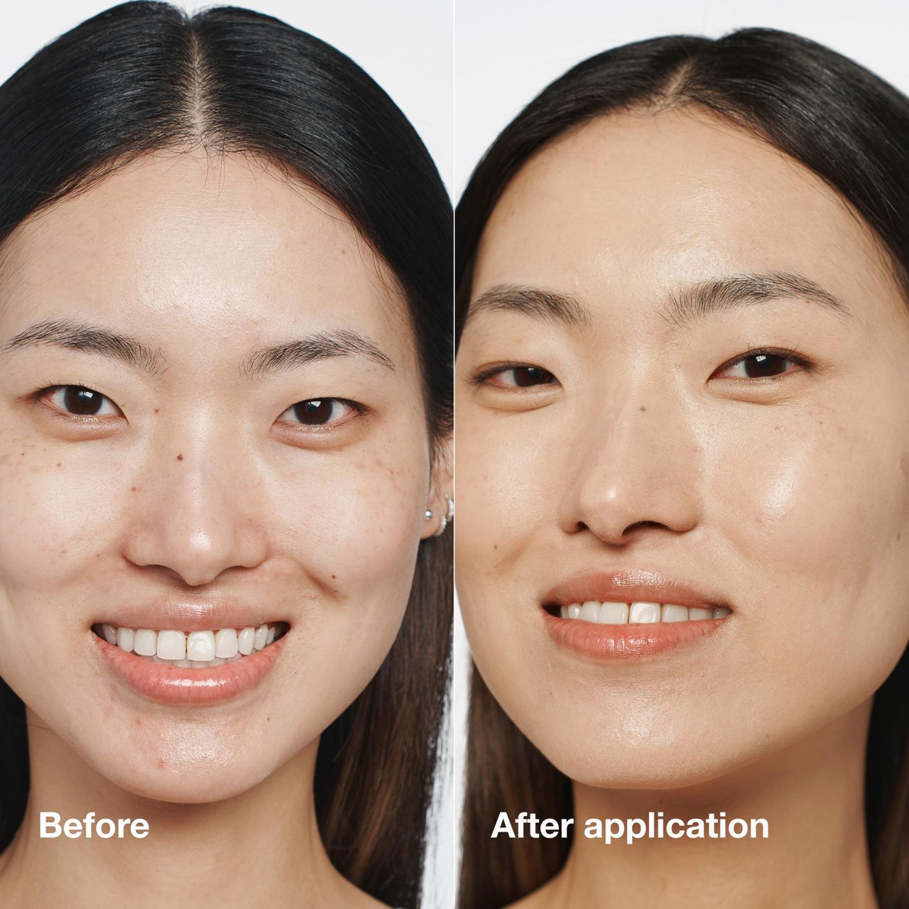A base líquida oferece cobertura moderada 24 horas com um acabamento fosco natural.