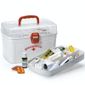 Frasqueira Caixa Grande .Frasqueira é uma Maleta ideal para guardar, possui tampa de proteção transparente que ajuda a preservar a organização ,possui bandeja divisória, Lacre e alça. Desenvolvido em polipropileno e material atóxico..Medidas : 19,8 x 28 x 18,8 cm cor predominante:Branco Entidade:Frasqueira marca:Nitron