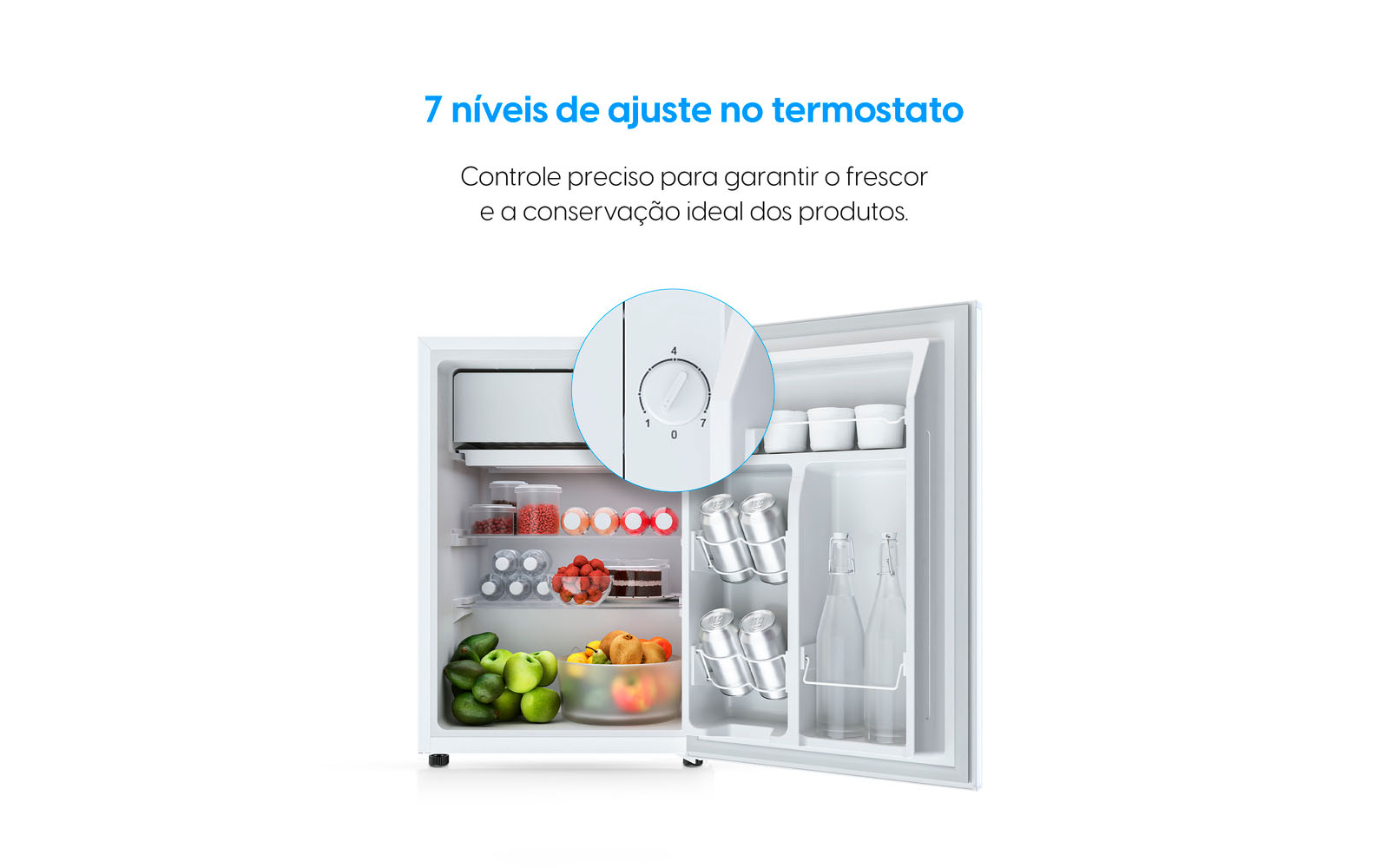 termostato Com 7 Níveis De Ajuste Para Garantir Frescor E Conservação, Mantendo Seus Alimentos E Bebidas Sempre Na Temperatura Ideal.