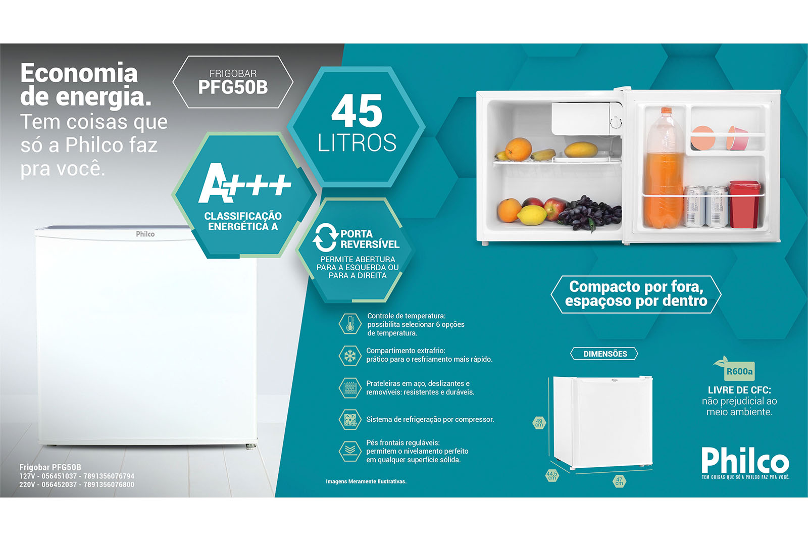 o Frigobar Philco Pfg50b É Compacto E Prático. Com Capacidade Para 45 Litros E Dimensão Ideal Para Ambientes Menores!