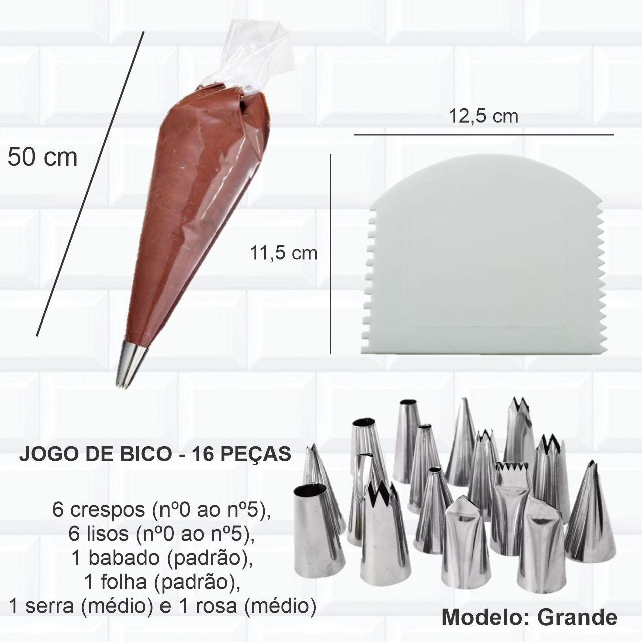 -jogo De Bico Inox 16 Peças: 6 Crespos (nº0 Ao Nº5), 6 Lisos (nº0 Ao Nº5), 1 Babado (padrão), 1 Folha (padrão), 1 Serra (médio) E 1 Rosa (médio)