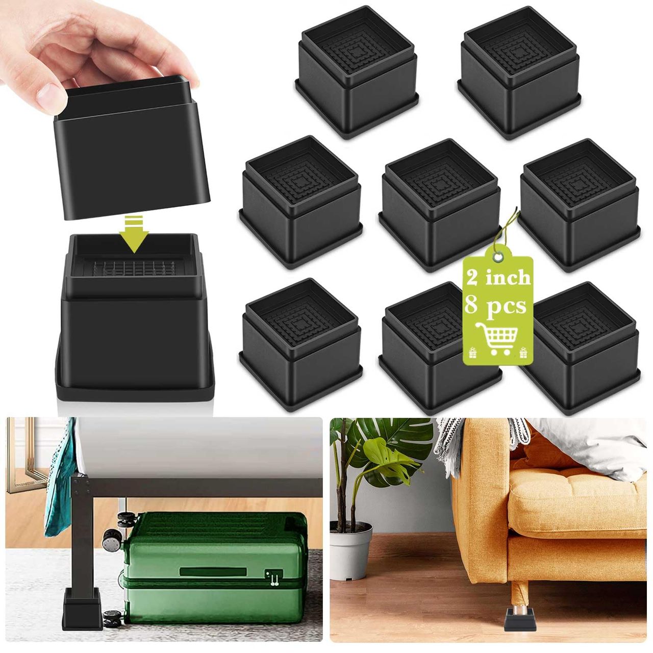 2,5 Cm Tamanho: 7,5 X 7,5 X 3,63 Cm/2,76 * 2,76 * 1,43 Pol. 2 Polegadas Tamanho: 7,5 * 7,5 * 6,17 Cm/2,76 * 2,76 * 2,45 Pol. 2,5 Pol. Pacote Com 4 Peso Do Produto: 0,28 Kg 5 Cm 6 Peso Do Produto: 0,42 Kg / 0,93 Lbs 2,5 Cm Pacote Com 8 Peso Do Produto: 0,56 Kg / 1,23 Lbs 5.1 Cm Pacote Com 4 Peso Do Produto: 0,42 Kg / 0,93 Libras 5.1 Cm 6 Pacote Com 6 Peso Do Produto: 0,63 Kg / 1,39 Libras 5.1 Cm Pacote Com 8 4 Kg. Pacote Com 4 Unidades De 85 Libras 7,6 Cm Peso Do Produto: 0,7 Kg / 1,54 Libras 10,2 Cm Pacote Com 4 Peso Do Produto: 0,98 Kg / 2,16 Libras Material: Plástico, Borracha Forma: Quadrada Tipo De Base: Antiderrapante Cor: Preto Blocos De Elevação De Cama Empilháveis E Ajustáveis Os Elevadores De Cama São Empilháveis E Reorganizáveis. Estes Elevadores De Cama Para Dormitório Twin Xl Vêm Com Diferentes Alturas Que São Empilháveis Para Obter A Elevação Exata Que Você Precisa. Após O Empilhamento, Os Elevadores De Móveis De 2,5 Cm Podem Ir De 2,5 Cm A Elevadores De Móveis De 5 Cm, Elevadores De Móveis De 7,6 Cm Ou Mais. Elevadores De Cama De Plataforma Multifuncionais 1. O Elevador De Mesa Pode Fornecer Elevação Suficiente Para Que O Aspirador De Pó Do Robô Possa Ir Sob Os Móveis. 2. Use Elevadores De Cama Extra Altos De 7,6 Cm Para Adicionar Mais Espaço De Armazenamento Embaixo Da Cama. Perfeito Para Dormitório De Faculdade. 3. Use Estes Elevadores De Sofá Resistentes De 5 Cm Para Elevar O Sofá Para Facilitar O Levantamento. 4. Use Blocos De Elevação De Mesa Para Levantar A Mesa "apenas O Suficiente" Para Ser Ergonomicamente Correta. 5. Use Os Elevadores Das Pernas Da Cama Para Levantar A Cabeceira Da Cama Para Ajudar Nos Problemas De Refluxo Noturno. 6. Use Blocos De Elevação Para Colocar Sob As Pernas Do Piano Para Proteger O Chão. Adequado Para Móveis Pesados De Pernas Finas Estes Elevadores De Sofá Para Um Sofá São Adequados Para Qualquer Perna De Móvel Quadrada, Redonda E Irregular Medindo Menos De 6 X 6 Cm. Em Comparação Com Outros Suportes De Colchão, Nosso Suporte De Perna De Mesa É Pequeno E Leve, Mas Definitivamente Resistente O Suficiente Para Guardar Móveis Resistentes Como Cama, Cadeira, Mesa, Armário, Sofá, Mesa, Suporte De Tv, Máquina De Lavar, Geladeiras, Etc. - 👍【elevadores De Cama Resistentes E Estáveis】 Nossos Elevadores De Mesa São Feitos De Plástico Pp Espesso De Alta Qualidade, Que É Forte O Suficiente Para Suportar Qualquer Móvel Pesado Para Casa Ou Escritório. O Design Interno De Reforço De Malha Aumenta Muito Sua Capacidade De Carga. O Triângulo Saliente Superior E A Parte Inferior De Borracha Dos Elevadores De Mesa Podem Segurar Firmemente As Pernas Dos Móveis, Absorvendo Choques E Antiderrapantes Para Evitar Que Os Móveis Deslizem, Protegem O Chão Do Atrito E Reduzem O Ruído. - 👍【elevadores De Móveis Empilháveis E Ajustáveis】 Estes Elevadores De Móveis De 5 Cm São Fáceis De Usar Sozinhos Para Obter 5 Cm De Altura, Ou Empilham 2 Juntos Para Obter 10 Cm De Altura Sob Mesa, Sofá, Cadeira, Sofá, Mesas-de-cabeceira E Prateleira Para Atender Às Suas Necessidades De Diferentes Alturas. Os Elevadores De Cama Empilháveis Podem Ser Empilhados Na Altura Que Você Quiser. Observação: O Empilhamento Deve Ser Considerado Para Segurança E Não É Recomendado Empilhar Muito Alto. - 👍【elevadores De Cama Práticos E Versáteis】 Estes Elevadores De Cama Não Apenas Facilitam O Uso Do Aspirador Robótico Sob Os Móveis Sem Ficar Preso, Mas Também Elevam Os Móveis Para Espaço De Armazenamento Adicional. Os Elevadores De Sofá Também Tornam Mais Fácil Para Os Idosos Levantarem-se Do Sofá E Elevam Uma Bancada De Trabalho Para Se Despedir Da Dor Nas Costas, E Até Mesmo Levantar A Cabeceira Da Cama Para Ajudar Nos Problemas De Refluxo Noturno. - 👍【adequado Para Móveis Pesados De Pernas Finas】 Estes Levantadores De Cama São Adequados Para Qualquer Perna De Móvel Quadrada, Redonda E Irregular Medindo Menos De 6 X 6 Cm. Em Comparação Com Outros Extensores De Perna De Mesa, Nossos Elevadores De Cadeira São Pequenos E Leves, Mas Definitivamente Resistentes O Suficiente Para Guardar Móveis Resistentes Como Cama, Cadeira, Mesa, Armário, Sofá, Mesa, Suporte De Tv, Máquina De Lavar, Geladeira, Etc. - 👍【fácil De Instalar】 Basta Colocar O Elevador De Móveis De 5 Cm Diretamente Sob Seus Móveis. Para Empilhar, Basta Remover As Almofadas De Borracha E Encaixar O Suporte Da Estrutura Da Cama Para Obter 5 Cm, 10 Cm Ou Mais. Observação: Empilhar Muito Alto Não É Recomendado Por Razões De Segurança.