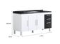 GABINETE PARA PIA | Este gabinete é produzido especialmente para pias de 1,50m, possui 3 gavetas com corrediças metálicas para melhor armazenar os itens de cozinha e conta com uma prateleira profunda completa no seu interior. Possui puxadores modernos e 5 pés para evitar empenamento da base, o gabinete é totalmente fabricado em MDP de 12mm, aumentando a durabilidade, resistência e qualidade do produto. O gabinete NÃO ACOMPANHA o tampo da imagem. Além desses detalhes possui uma fácil montagem.
