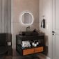 MóveisBanheiroArmário de BanheiroGabinete Harley 1 Gaveta E Espelho Redondo Led 50cm Bivolt Preto/nature