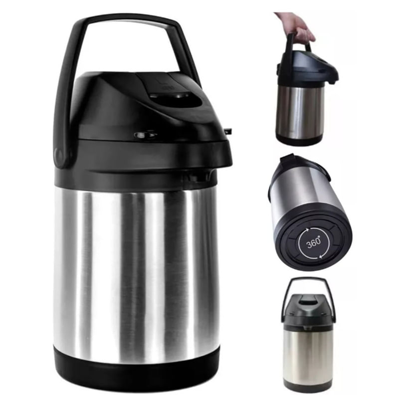 Garrafa Térmica De Aço Inoxidável 2,5l - Mantém Bebidas Quentes E Frias Por 24 Horas Desfrute De Suas Bebidas Favoritas Na Temperatura Ideal Com Esta Garrafa Térmica De Aço Inoxidável De 2,5 Litros. Projetada Para Oferecer O Melhor Em Retenção De Temperatura, Ela Mantém Suas Bebidas Quentes Ou Frias Por Até 24 Horas, Sendo Perfeita Para Qualquer Ocasião. Seja Para Um Café Quentinho Durante O Trabalho, Um Suco Gelado No Piquenique Ou Um Tereré Refrescante Com Amigos, Esta Garrafa Combina Durabilidade, Praticidade E Design Inteligente. Características Principais Material De Alta Qualidade: Feita Em Aço Inoxidável, Garante Resistência E Longa Vida Útil. Capacidade Ideal: 2,5 Litros, Perfeita Para Uso Individual Ou Para Compartilhar. Retenção Térmica Superior: Mantém Bebidas Quentes (como Chá, Café Ou Chocolate Quente) E Frias (como Água, Sucos Ou Mate Gelado) Por Até 24 Horas. Design Prático: Alça Ergonômica Para Transporte Confortável E Estrutura Leve E Compacta (peso: 1,570kg). Dimensões: Altura De 30cm, Diâmetro Da Base De 17cm E Largura Da Tampa De 21cm. Exterior Seguro: Não Sobreaquece Nem Resfria Por Fora, Permanecendo À Temperatura Ambiente. Versatilidade Para O Dia A Dia Leve Esta Garrafa Térmica Para Onde Você For! Ela É Ideal Para: Casa: Mantenha Água Quente Para Chás Ou Gelada Para O Dia Todo. Trabalho: Garanta Seu Café Quente Ou Suco Fresco Durante O Expediente. Lazer: Perfeita Para Acampamentos, Viagens, Piqueniques Ou Treinos Na Academia. Momentos Especiais: Sirva Bebidas Em Reuniões Ou Eventos Ao Ar Livre. Dicas De Uso E Cuidados Primeiro Uso: Para Bebidas Quentes, Pré-aqueça Com Água Morna Por Alguns Minutos. Para Frias, Esfrie Com Água Gelada (evite Gelo No Primeiro Uso, Após, Pode Usar Normalmente). Recomendações: Use A Capacidade Máxima, Evite Bebidas Gaseificadas, Mantenha Na Vertical Para Prevenir Vazamentos E Lave Com Água E Sabão Neutro (sem Cloro Ou Alvejantes). Com Construção Robusta, Isolamento Térmico Avançado E Design Portátil, Esta Garrafa De 2,5l É A Escolha Ideal Para Quem Busca Qualidade E Praticidade. Eleve Sua Hidratação Com Um Produto Durável, Seguro E Versátil, Perfeito Para Todas As Suas Necessidades!