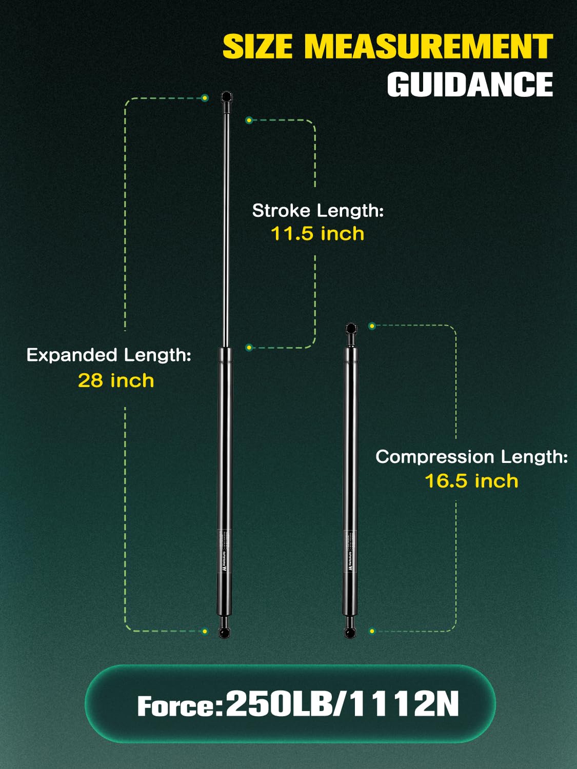 - Informações Da Embalagem: Comprimento Estendido 71 Cm (centro A Centro), Comprimento Comprimido 42 Cm (centro A Centro), Força 113.4 Kg/1112n Por Choque, Conector Final É Do Tipo Soquete De Nylon De 10 Mm, O Pacote Inclui: 2 × Helloauto 71.1 Cm Struts