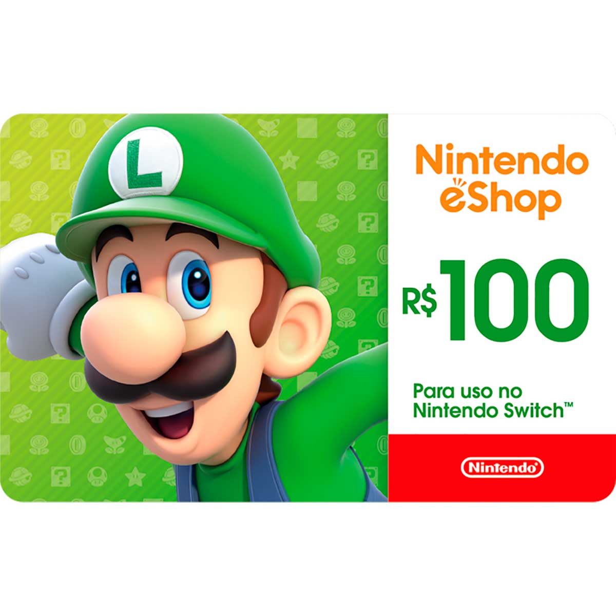 Conteúdo Personalizado | Gift Card Digital Nintendo R$ 100O Gift Card Digital Nintendo R$ 100 é a maneira perfeita de presentear os gamers da sua vida! Com ele, o presenteado poderá adquirir jogos, DLCs, aplicativos e muito mais na Nintendo eShop. Para usar o Gift Card, basta inserir o código na sua conta Nintendo ou Nintendo Network. É simples, rápido e prático! Vantagens do Gift Card Digital Nintendo: