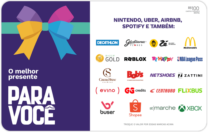 O código do gift card será liberado em 24h após a confirmação do pagamento.