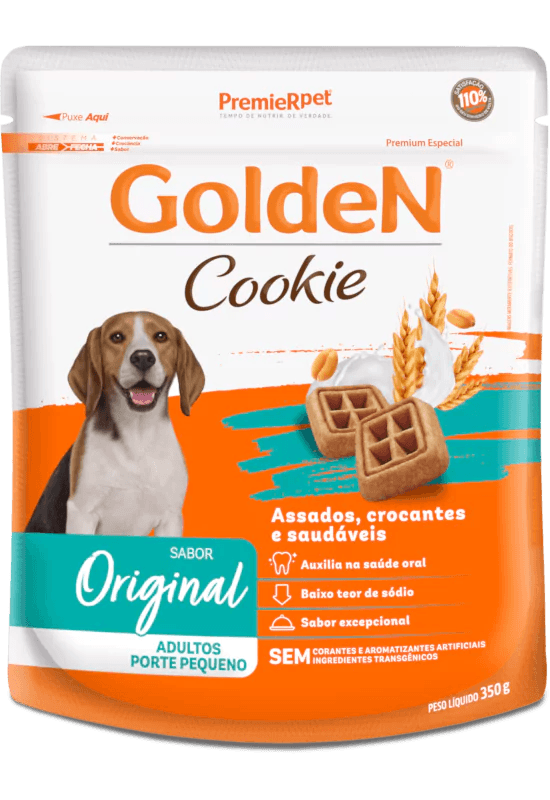 Golden Cookie Cães Adultos Porte Pequeno Original Para Tornar Os Momentos Junto Ao Seu Cão Mais Divertidos E Prazerosos A Premierpet® Desenvolveu A Linha Golden Cookie, Resultado Da Perfeita Combinação De Qualidade E Sabor, Com Cookies Assados, Crocantes E Saudáveis. Golden Cookie É Cuidadosamente Preparado Com Ingredientes Selecionados, Sem Adição De Açúcar, Sem Corantes E Aromatizantes Artificiais E Sem Ingredientes Transgênicos. Produzido Em Uma Das Fabricas Mais Modernas Do Mundo, Com Equipamentos Próprios Para A Fabricação De Biscoitos Humanos, Os Cookies São Inovadores E Diferentes De Todos Os Produtos Encontrados Até Hoje No Mercado. Conheça Nossa Fábrica Exclusiva Para A Produção De Cookies 400 G – Sistema De Fechamento – Easy Open / Abre Fecha Composição Farinha De Trigo, Farinha De Torresmo, Colágeno Hidrolisado, Leite Em Pó Desnatado, Ovo Em Pó, Amido De Milho, Dextrina, Fibra De Trigo, Quirera De Arroz, Banha Refinada, Antioxidantes (concentrado De Tocoferóis E Extrato De Alecrim), Bicarbonato De Sódio, Carbonato De Cálcio, Extrato De Urucum, Hexametafosfato De Sódio (0,1%), Hidrolisado De Fígado Suíno. Umidade (máx.) 10,00 % 100 G/kg Proteína Bruta (mín) 18,00 % 180 G/kg Extrato Etéreo (mín) 14,50 % 145 G/kg Matéria Mineral (máx.) 4,00 % 40 G/kg Matéria Fibrosa (máx.) 3,00 % 30 G/kg Cálcio (máx.) 0,50 % 5.000 Mg/kg Cálcio (mín) 0,10 % 1.000 Mg/kg Fósforo (mín) 0,10 % 1.000 Mg/kg Sódio (mín) 0,15 % 1.500 Mg/kg Energia Metabolizável 4.249 Kcal/kg Energia Metabolizável 22,50 Kcal/unidade