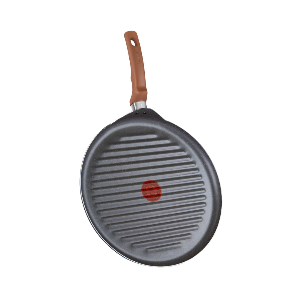 Linha Rochedo Natural Stone, cozinha saudável sem necessidade de óleo com antiaderente Minerium, deliciosamente natural, possui um efeito pedra que traz mais resistência e modernidade para a sua cozinha. O Grill Redondo Rochedo Natural Stone 30cm é perfeito para grelhar carnes, vegetais e outros alimentos de forma saudável e prática. Conheça todos os diferenciais dessa linha: Cozinha saudável: Sem necessidade de óleo, deliciosamente natural. Antiaderente Minerium: Com efeito pedra, mais resistência. Thermo-Sinal: Muda de cor indicando o momento ideal para selar seu alimento. Alumínio de alta espessura: Com 2mm para um cozimento homogêneo e melhor distribuição de calor. Cabo soft touch: Para um manuseio mais confortável. Além de contar com a qualidade da marca Rochedo, presente no Brasil há mais de 100 anos, o Grill Redondo Rochedo Natural Stone 30cm é livre de substâncias tóxicas (PFOA), garantindo a segurança no uso do produto. Pode ser utilizado em fogão a gás, vitrocerâmico e elétrico, podendo também ser levado à máquina de lavar louças.