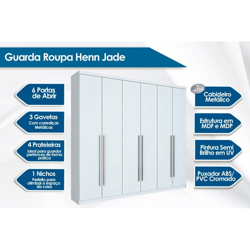 Guarda Roupa Henn Jade c/ 6 Portas e 3 Gavetas - Rústico c/ Off White Marca: HennDimensões(Cm): Comprimento(Profundidade): 46,50 x Largura: 250,00 x Altura: 230,00 CARACTERÍSTICAS DE MÓVEIS Tipo de Estrutura do Móvel - MDF / MDP Tipo de Pintura - UV (Ultravioleta) - Pintura Texturizada Tipo de Acabamento da Pintura - Semi Brilho Tipo de puxador - ABS / PVC Cromado Quantidade de Prateleiras - 4 Prateleiras Quantidade de Gavetas - 3 Gavetas Diferenciais da Gaveta - Corrediças Metálicas Quantidade de Portas - 6 Portas de Abrir Quantidade de nichos - 1 Nicho Garantia - 3 Meses Não nos responsabilizamos pela montagem/instalação dos produtos. Todas as informações divulgadas são de responsabilidade exclusiva do fabricante/fornecedor. Imagens Meramente Ilustrativas. Verifique com os fabricantes do produto e de seus componentes eventuais limitações à utilização de todos os recursos e funcionalidades.