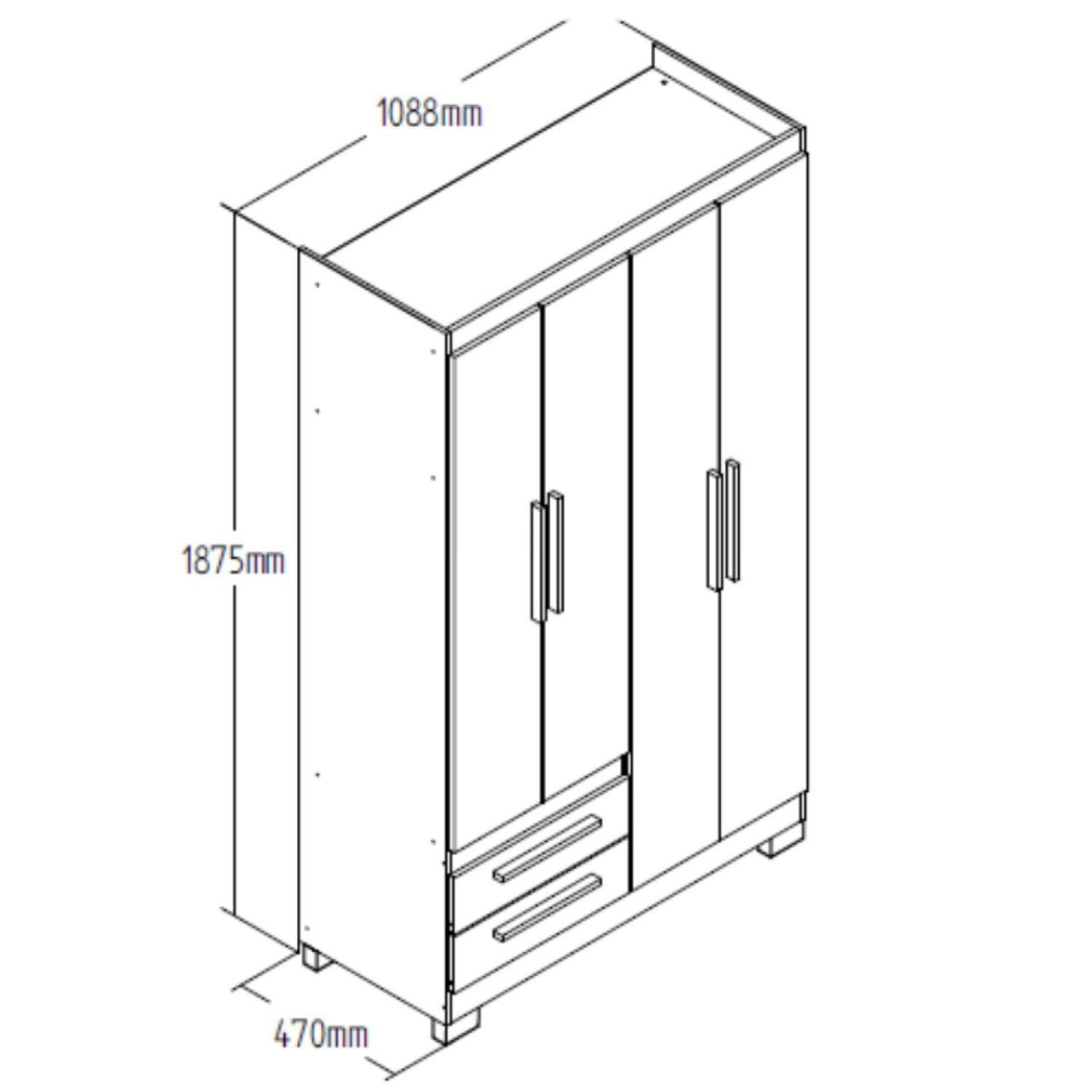 Guarda-roupa Solteiro 4 Portas E 2 Gavetas Branco.