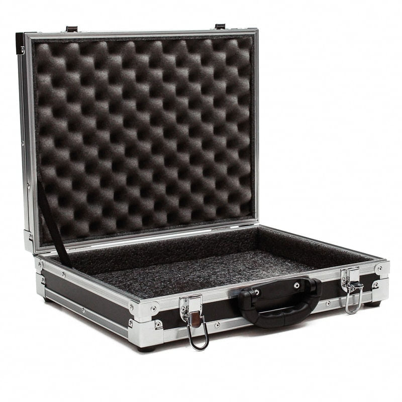 Case mala para o microfone sem fio . .Estrutura de 6mm revestido em laminado tx preta.Perfil macho e fêmea de 6mm de alumínio para maior resistência.Cantoneira em L nas laterias de 15mm.Acabamento interno em espuma de alta densidade com o recorte para cada peça do sistema.Fechos cromados .Cantos de metal cromado. .Dimensões externas .Largura 44 cm .Profundidade 36 cm.Altura 10 cm. .Peso aproximado.3,400 kg Entidade:Microfone marca:Somcase