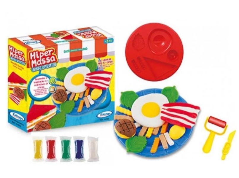 Hiper Massa Lanches Divertidos - A Xalingo com muito carinho deselvolveu a Hiper Massa. Com este brinquedo a imaginação das crianças só irão crescer. Vai ter Lanchinhos por toda casa!-Diferentes cores de massinhas,-1 molde,-1 rolinho,-1 faquinha,-1 pratinho,-Indicado para pequenos a partir de 3 anos.