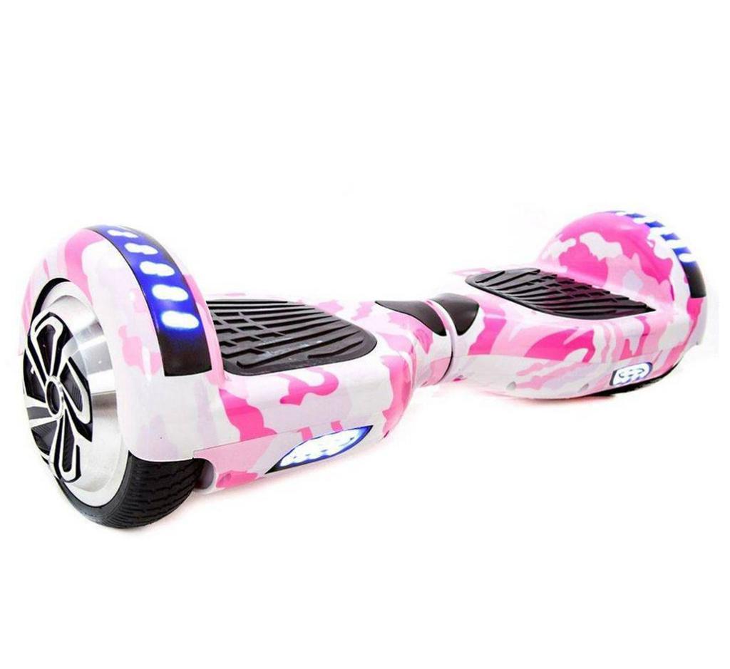 Hoverboard Skate Elétrico 6.5 Rosa Camuflado LED Bluetooth