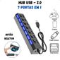 Hub Usb 2.0 Com 7 Portas E Cabo Extensor - Expanda Seu Setup