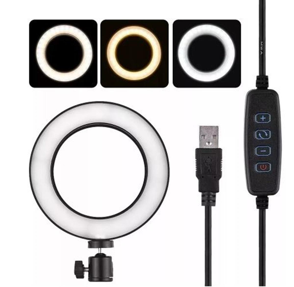 Iluminador Ring Light 6 Polegadas 16cm Usb Led 5500k Com Apoio De Mesa