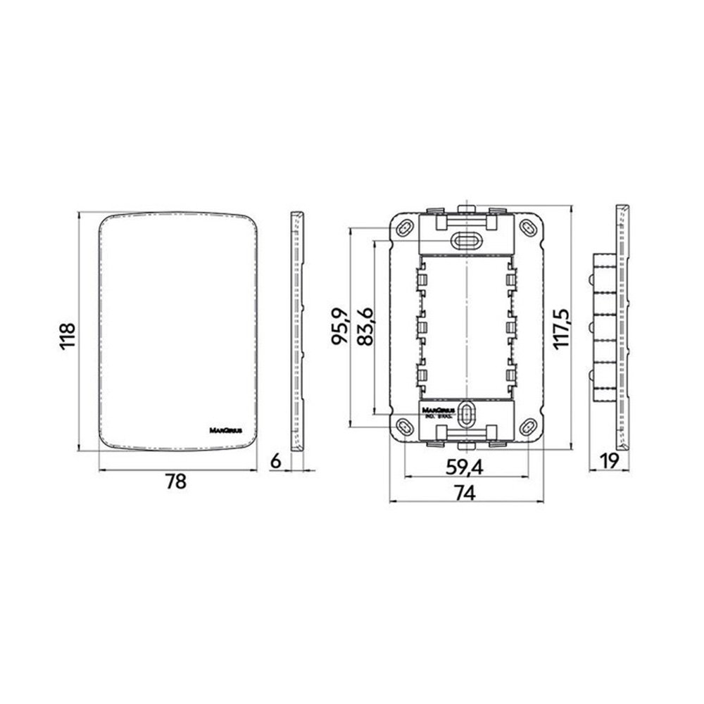 Dimensões Axlxp (mm): Placa: 118x78x6 - Suporte: 117,5x74x19