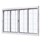 Janela De Aço De Correr Central 100x200cm 4 Folhas Com Grade Quadriculada E Vidro Liso Qualitysol Ra Branco.