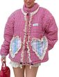 - Características: Fecho De Pressão, Bolsos De Coração Fofos, Acabamento De Renda, Estampa Xadrez De Guingão, Bainha Com Cordão, Gola Alta, Jaquetas Acolchoadas Recortadas De Inverno Para Mulheres, Proporcionando Uma Adição Colorida Ao Seu Guarda-roupa