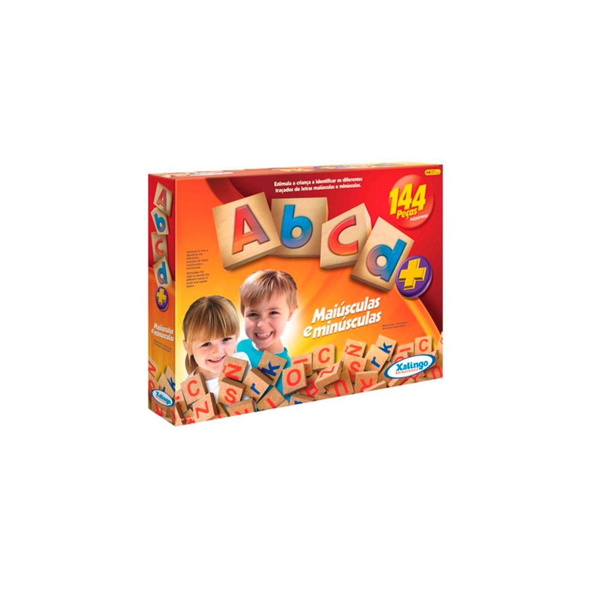 Jogo ABCD com 144 Peças - Xalingo..Este brinquedo possibilita a identificação dos diferentes traçados das letras, semelhanças e diferenças das letras maiúsculas e minúsculas, o reconhecimento e a ordenação das letras, bem como a formação de palavras e frases. ..Estimula a criança a identificar os diferentes traçados de letras maiúsculas e minúsculas.