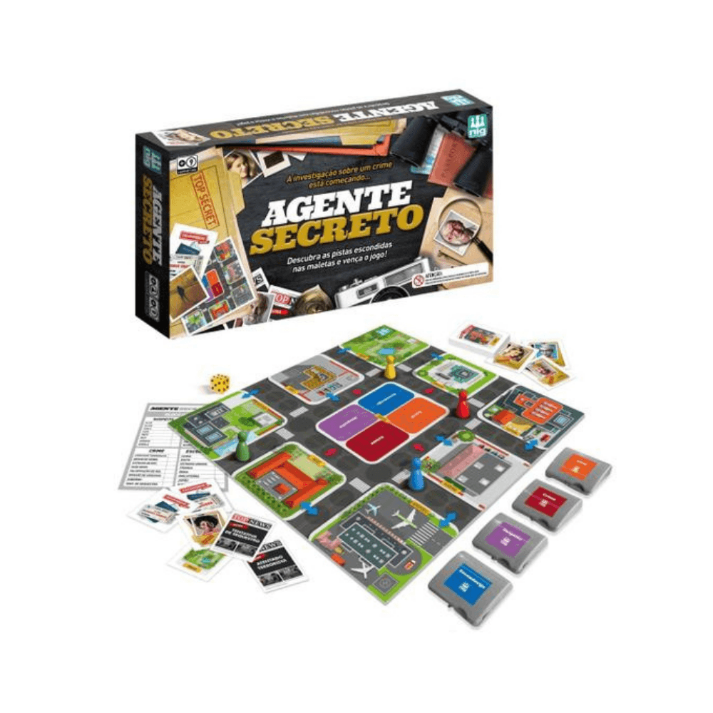 A Investigação Sobre Um Crime Esta Começando... Descubra As Pistas Escondidas Nas Maletas E Vença O Jogo! Um Crime Foi Cometido! Onde Ocorreu O Crime, Quem É O Criminoso E Onde Ele Está Escondido? Cada Agente Deve Ficar Atento As Pistas Escondidas Nas Maletas Secretas. O Jogador Vai Precisar Ser Esperto Para Percorrer O Tabuleiro, Ir Descartando As Pistas Falsas Até Formar Seu Palpite. Dois Palpites Errados E O Jogador Será Eliminado! Um Jogo Que Envolve Mistério, E Vai Estimular O Raciocínio Em Um Clima De Suspense E Diversão. Descubra A Cada Partida Um Novo E Emocionante Mistério!
