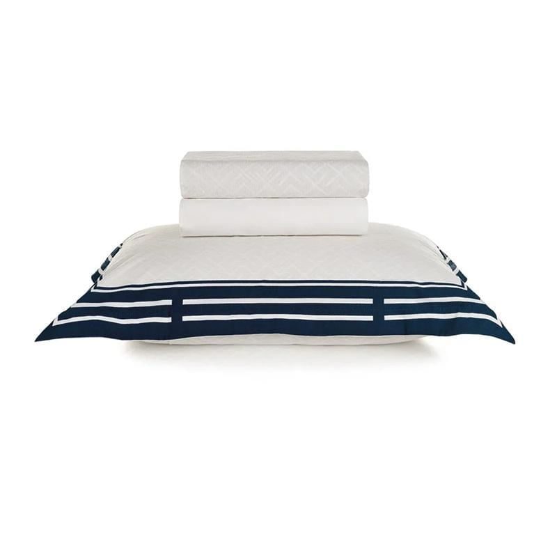 Jogo De Cama Solteiro 200 Fios 100% Algodão Barcelos: Transforme Sua Cama Em Um Refúgio De Conforto E Elegância Com O Jogo De Cama Barcelos Solteiro. Confeccionado Em 100% Algodão Com 200 Fios, Oferece Um Toque Encorpado E Altamente Respirável, Ideal Para Noites De Sono Tranquilas. A Tecnologia Antipilling E O Acabamento Hipoalergênico Garantem Durabilidade E Cuidado Com A Pele. O Conjunto Inclui Um Sobre Lençol Estampado De 1,80m X 2,50m Com Dobra Feita E Bainha Comum, Um Lençol Com Elástico 1,00m X 2,00m X 35cm E Duas Fronhas 50cm X 70cm Com Quatro Abas De 4 Cm Com Estampa Dimensionada Formando Uma Moldura Que Conferem Sofisticação. A Composição Nas Cores Branca E Azul Adiciona Um Toque Sereno E Clássico Ao Ambiente. Combine Com O Edredom Ou A Colcha Da Linha Barcelos Para Uma Cama Que Acolhe E Encanta.