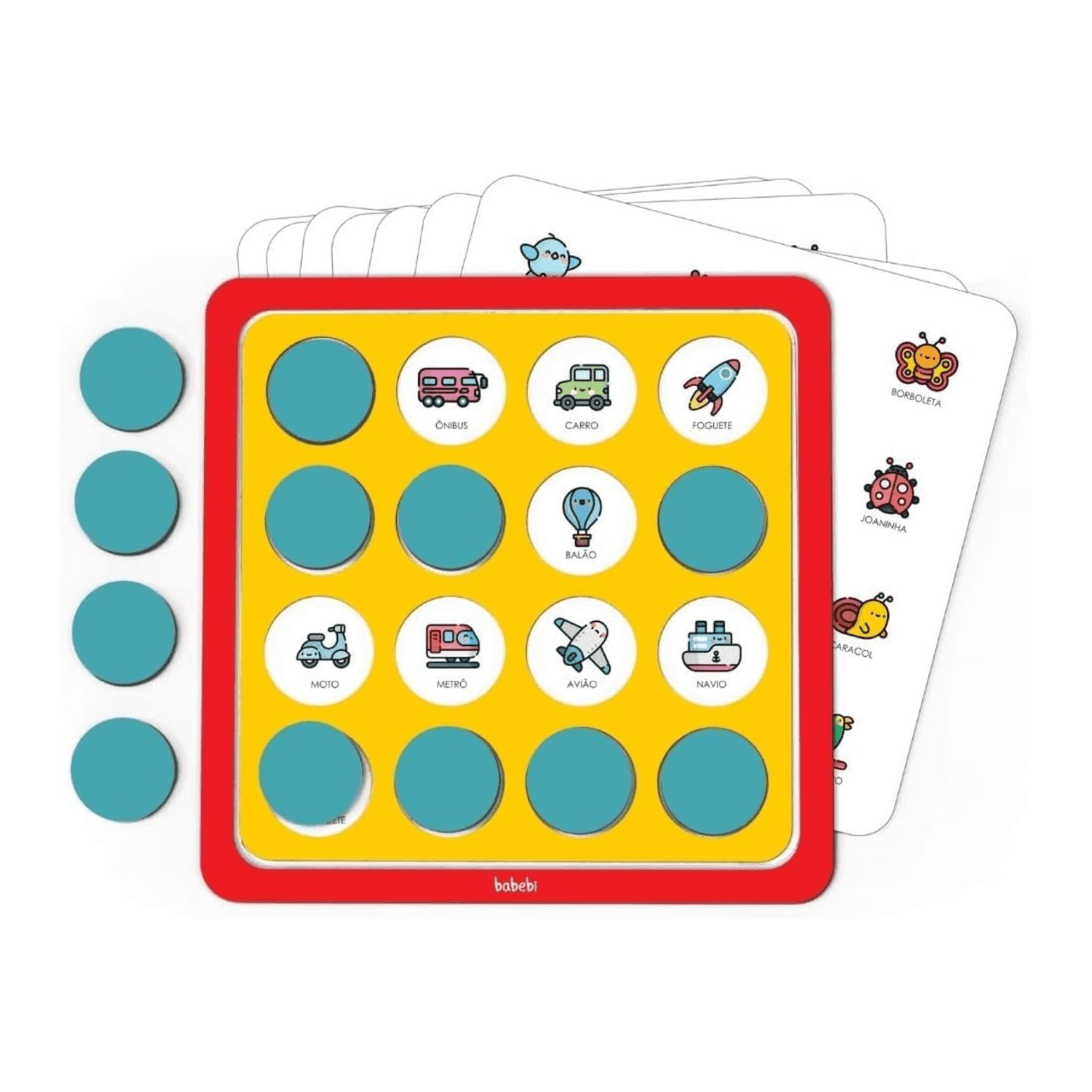 conteúdo Da Embalagem: 01 Tabuleiro, 16 Botões, 04 Fichas Frente E Verso C/ 08 Temas.