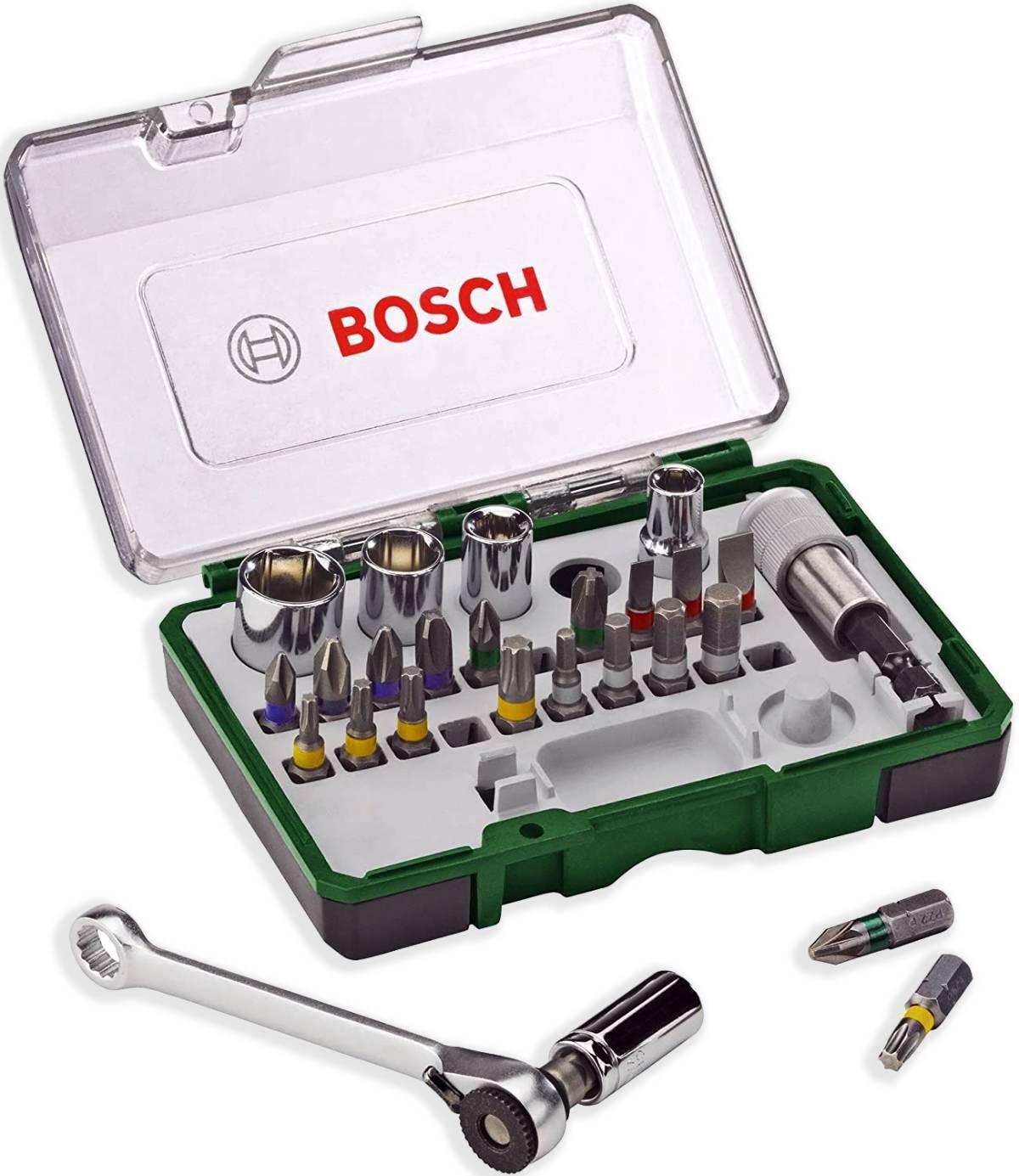Jogo De Bits E Soquetes Com Catraca 27 Peças - Boschos Kits De Pontas E Soquetes Bosch Extra Hard São Ideais Para Aplicações Universais De Parafusamento E Fixação.as Pontas E Soquetes São Fabricados Com Aço De Alta Qualidade Com Processo De Tratamento Térmico Que Traz Alta Resistência E Permite Um Alto Desempenho Nas Aplicações. A Zona De Torção Cônica Das Pontas Absorve A Força E Vibração Durante As Aplicações Executando Todos Os Parafusamentos Com Facilidade.o Portfólio Bosch Extra Hard É Completo E Possui Pontas Philips (ph), Pozidriv (pz), Torx (t), Fenda (s) E Soquetes Em Diferentes Diâmetros Com Encaixe Hexagonal 1/4. São Indicados Para Utilização Em Furadeiras E Parafusadeiras. Conteúdo Da Embalagem- 1 Estojo- 19 Bits De 25 Mm: Ph 1 / 2 / 2 / 3, Pz 1 / 2 / 3, Fen 4 / 5 / 6, Torx 10 / 15 / 20 / 25 / 30, Hex 3 / 4 / 5 / 6,- 1 Minichave De Catraca- 1 Adaptador Multi-fit- Soquetes 6 / 7 / 8 / 10 / 13 Mm + Adaptador