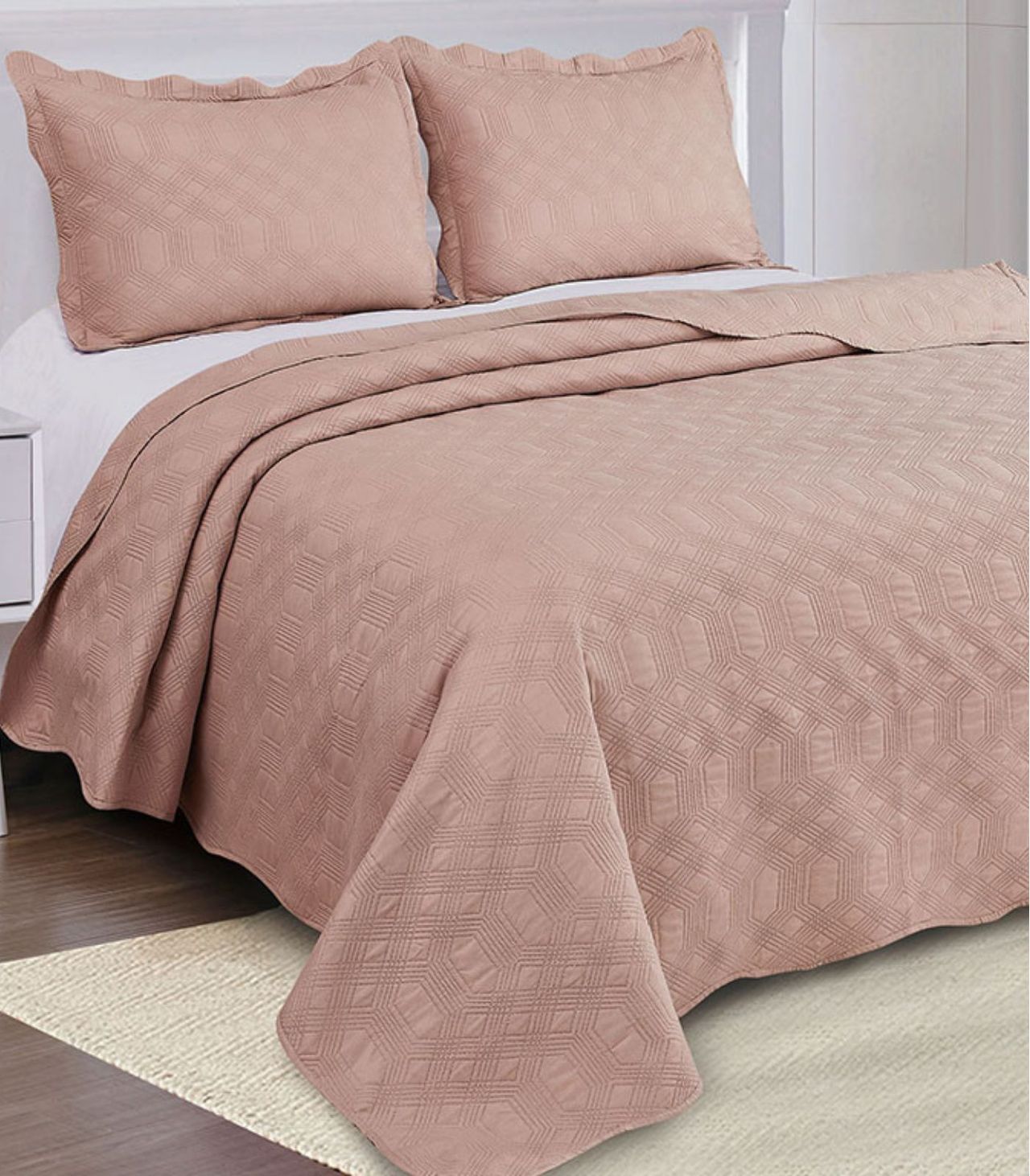 Jogo De Colcha Duque King Acompanha Três Peças, Sendo 02 Porta Travesseiros E 01 Colcha, Confeccionados Em Poliéster. Com Matelassê Ultrassônico Que É A Mais Nova Tecnologia Em Que Se Refere Ao Matelar. Prática E De Ótima Qualidade, Fará Do Seu Quarto Mais Aconchegante.