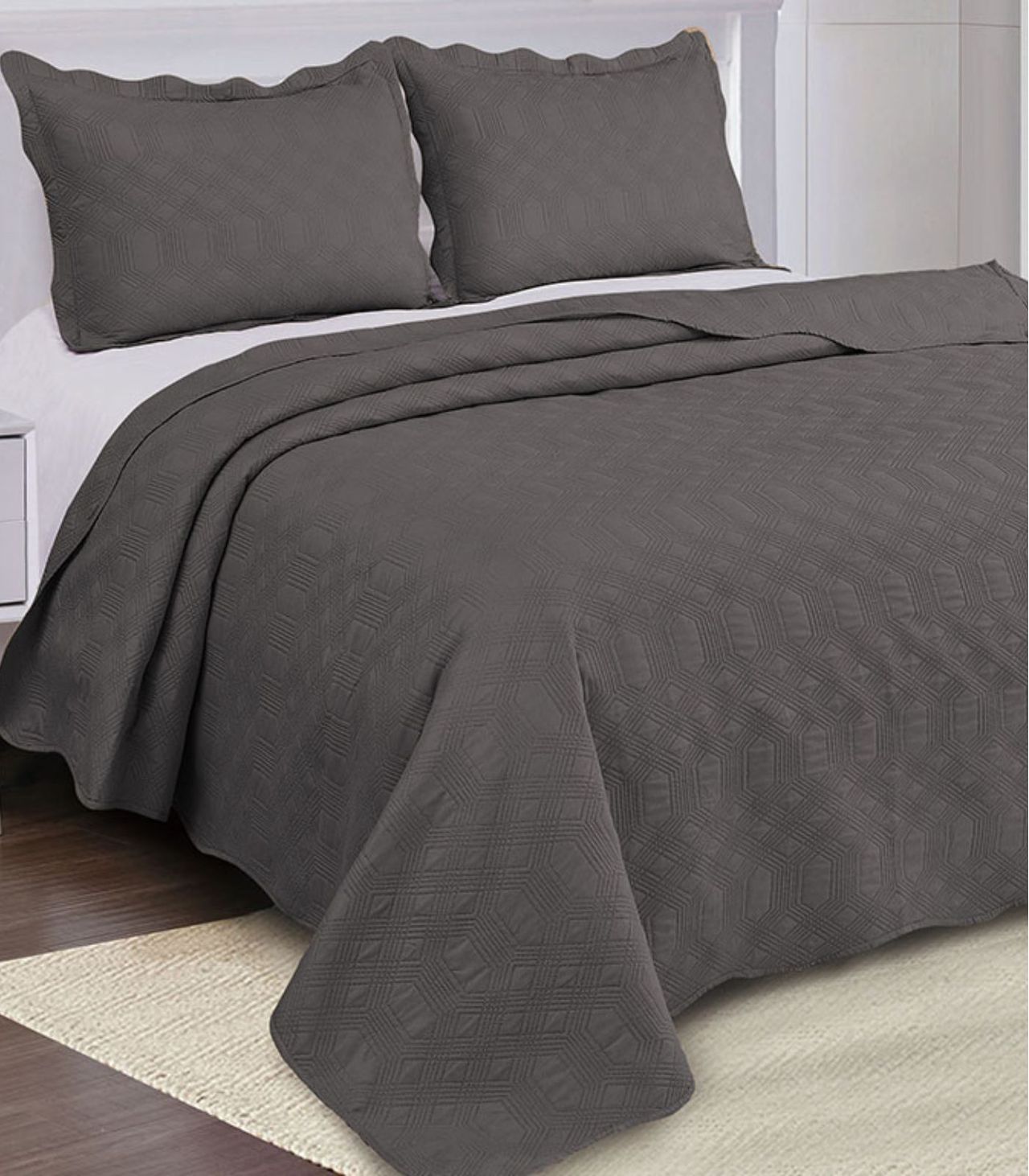 Jogo De Colcha Duque Queen Camesa Cinza Un