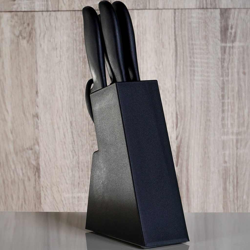 Com Acabamento Preto Fosco E Visual Contemporâneo, O Jogo De Facas Black Com Cepo É Um Destaque Na Decoração Da Sua Cozinha. O Conjunto Acompanha Um Suporte Compacto (21x13,5cm) Que Organiza E Protege As Lâminas, Além De Facilitar O Acesso Rápido Aos Utensílios. Mais Que Uma Peça Funcional, É Também Um Item De Decoração Que Valoriza Bancadas E Cozinhas Planejadas Com Estética Moderna.