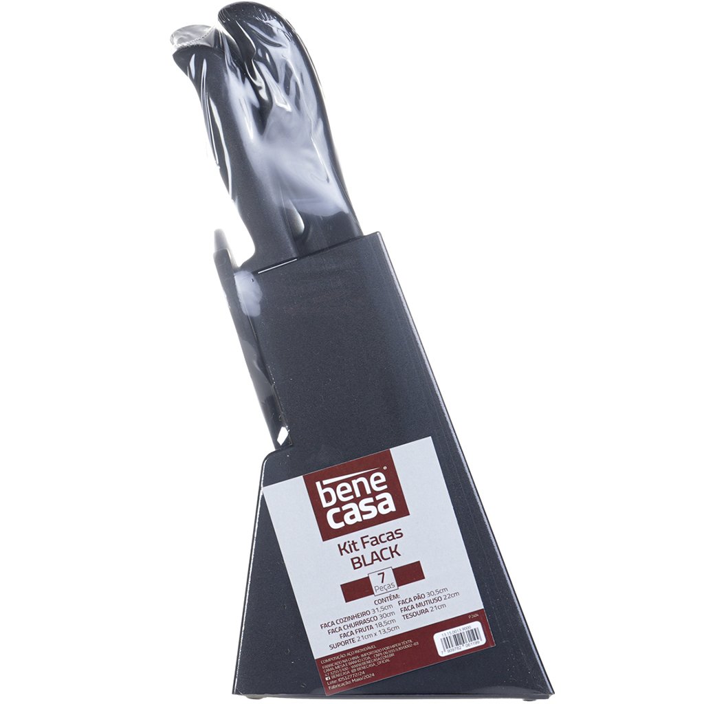 Jogo De Facas Black Com Cepo 7 Pçs Preto -