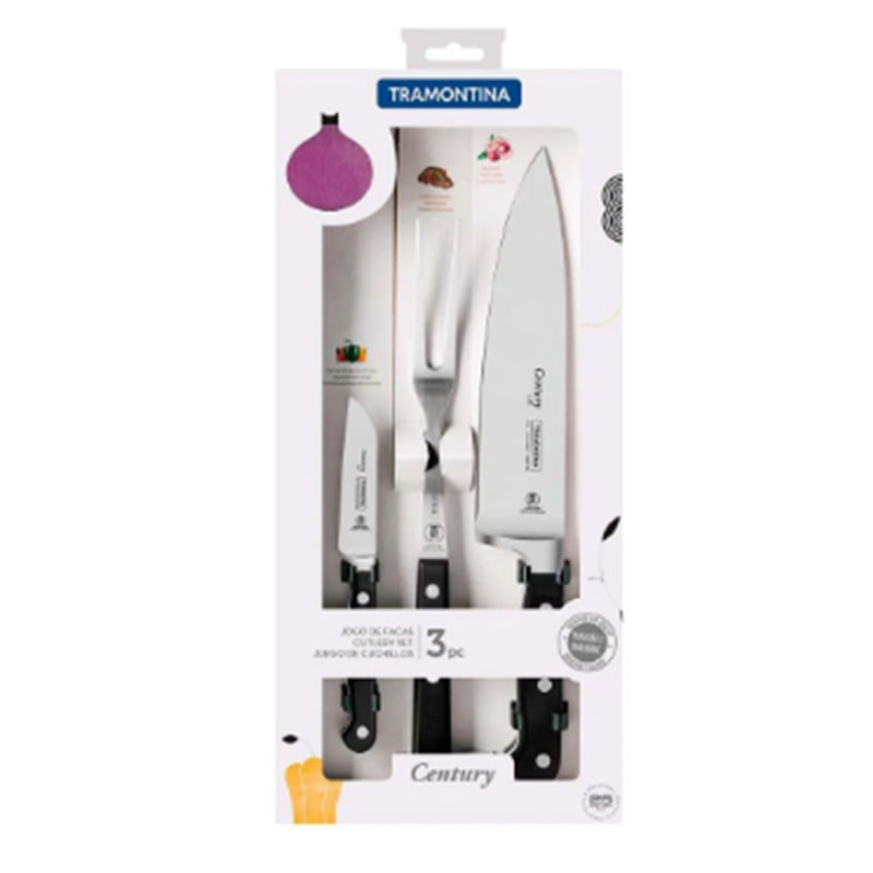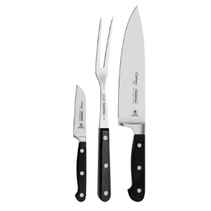 O Jogo De Facas Tramontina Century Com Lâminas Em Aço Inox E Cabos Em Policarbonato E Fibra De Vidro 3 Peças É Perfeito Para Você Preparar E Servir Os Melhores Cortes De Carnes À Sua Família Produzidas Com Lâminas Forjadas Em Aço Inox Especial Que Garante Um Fio Altamente Durável E Preciso Devido A Têmpera Diferenciada, O Jogo É Prático, Pois Os Cabos São De Policarbonato Reforçado Com Fibra De Vidro, Garantindo Assim, Alta Durabilidade E Ergônomia, Segurança E Conforto No Manuseio. Elas Podem Ir À Máquina De Lavar Louças, Deixando O Seu Dia A Dia Muito Mais Eficiente. Com Peças Que São Coringa, Esse Jogo Não Pode Faltar Na Sua Casa. A Escolha Perfeita Para Quem Preza Pelo Melhor Na Cozinha! Mtb