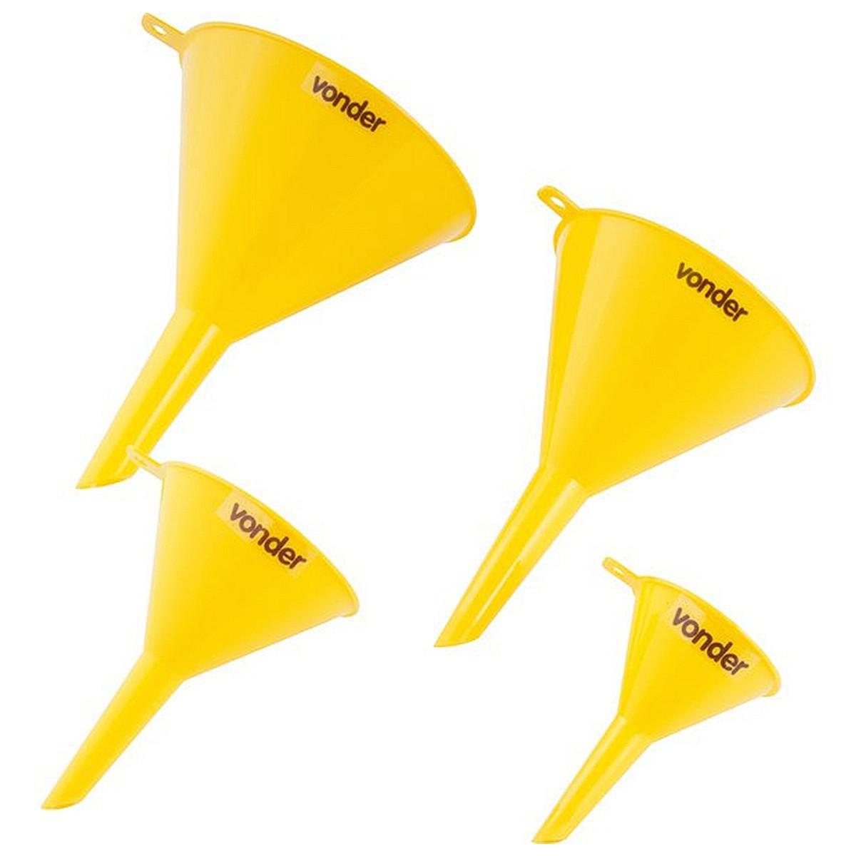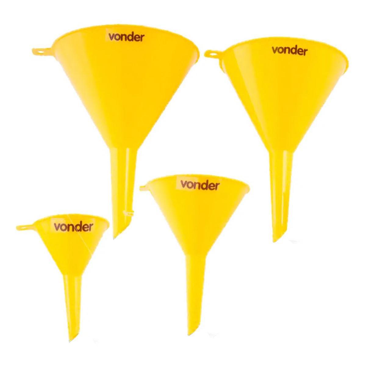 O Jogo De Funis Plásticos Com 4 Peças Vonder É Indicado Para Facilitar A Transferência De Líquidos Sem Que Haja Desperdício, Pode Ser Utilizado Para Completar Água No Radiador, Reservatório Do Limpador Do Para-brisa, Gasolina, Óleo, Derivados De Petróleo, Etc. O Jogo Possui 4 Funis De Tamanhos Diferentes Para Facilitar Seu Trabalho. Essencial Para Uso Em Oficinas E Para Deixar Como Socorro No Porta-malas. Feito Em Polipropileno, Os Funis Com Bico Rígido Possuem A Qualidade Vonder.