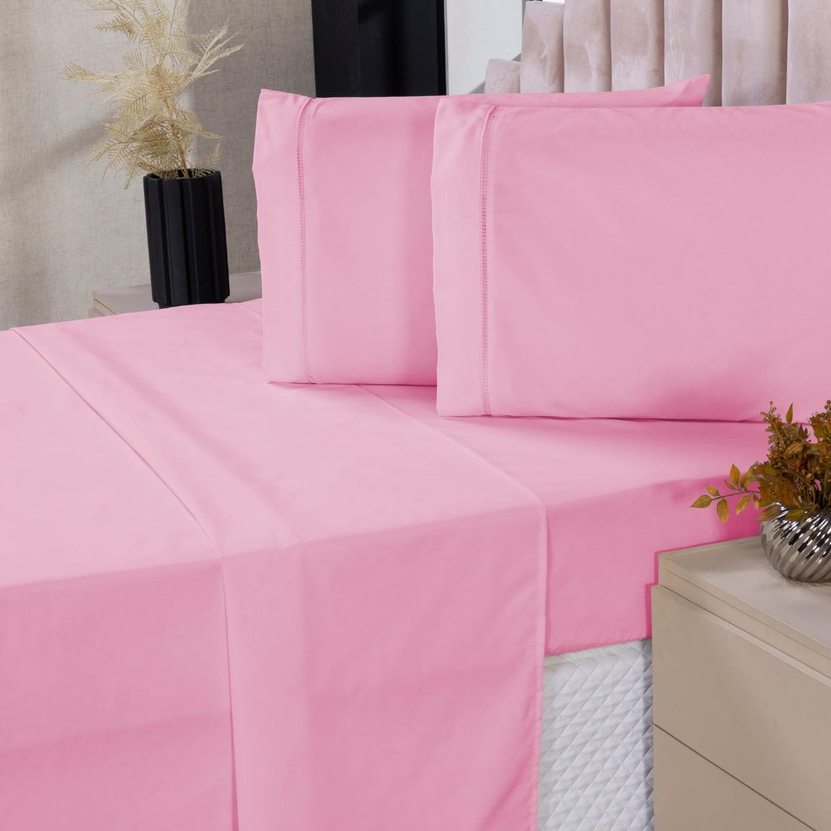 Jogo De Lençol Casal 4p Algodão Com Lençol De Cima Rosa