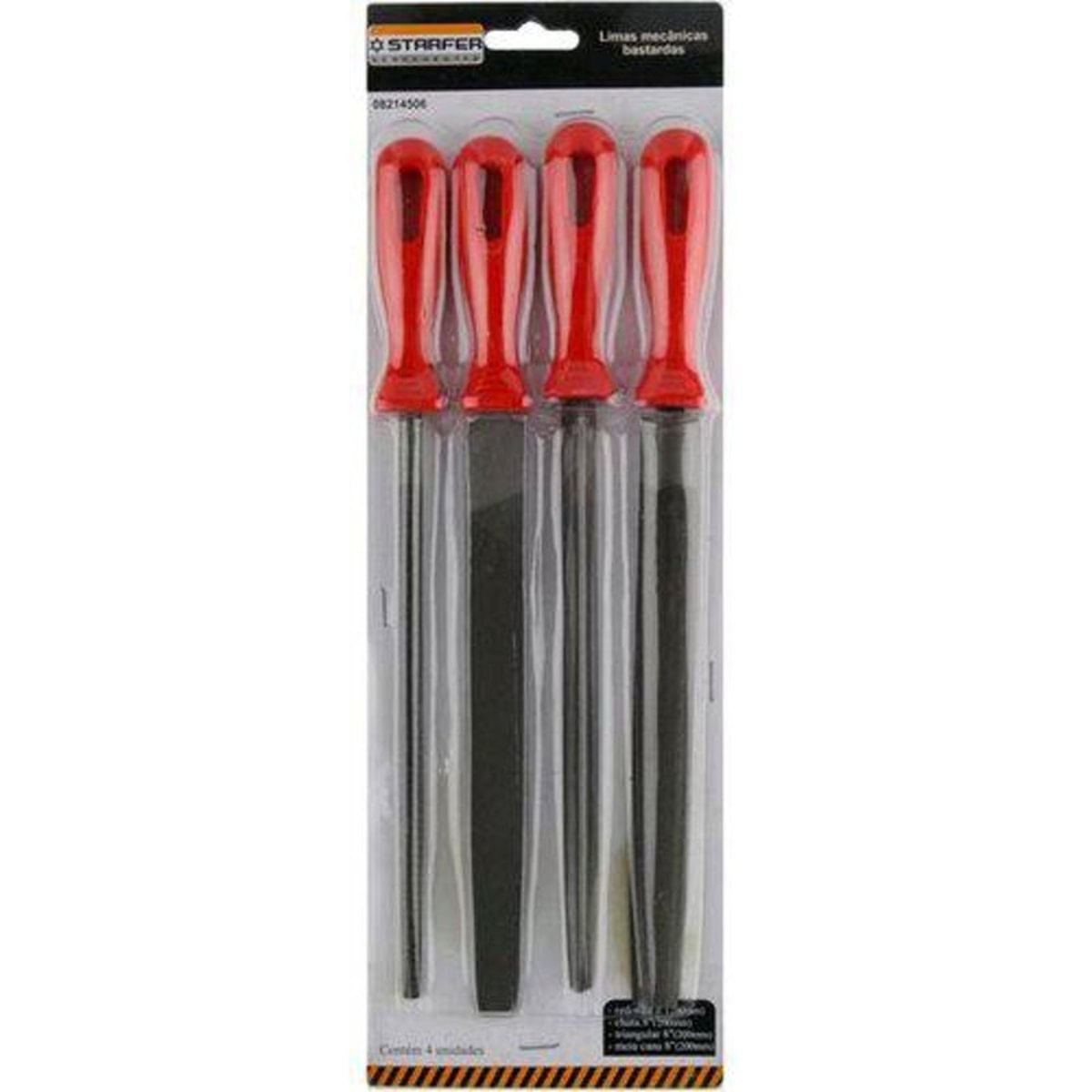 Jogo de Limas Bastardas com Cabo - 4 Peças - Rocast - 367,0017......DADOS TÉCNICOS: ..Marca: Rocast..Apresentação: Blister Encartelado..Descrição: Jogo de Limas Bastardas 8 Com Cabo - 4 Peças..Modelos de Limas: Chata, Meia-Cana, Redonda, Triangular...Código: 367,0017..Código de Barras (EAN): 7899561515213 ......Garantia Prazo de 06 (seis) meses contra defeito de fabricação a partir da data de emissão da Nota Fiscal..A imagem aqui apresentada é meramente ilustrativa e foi fornecida pelo fabricante. Ela não reflete as dimensões reais do produto. Para decisão de compra considerar a descrição e especificação técnica do produto.
