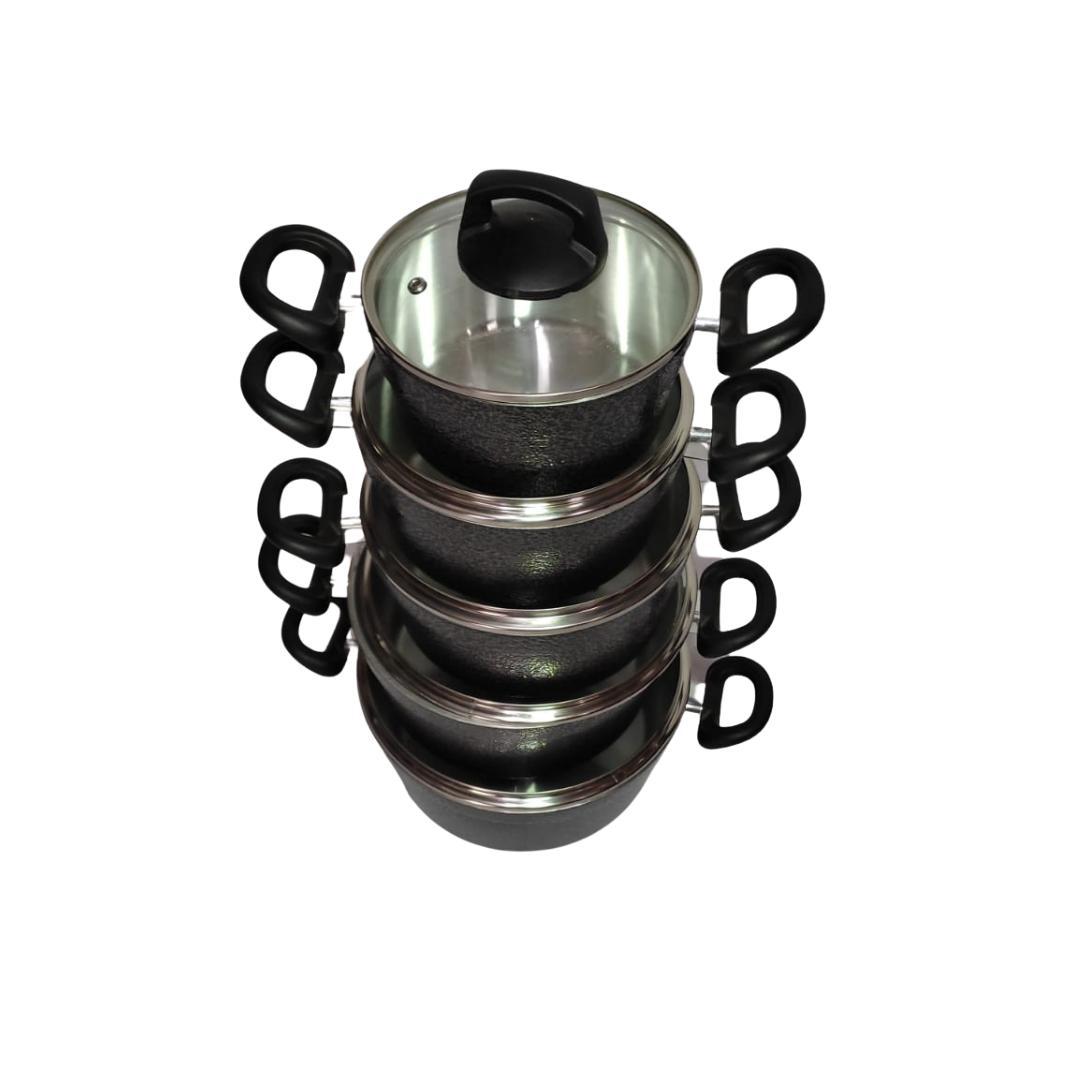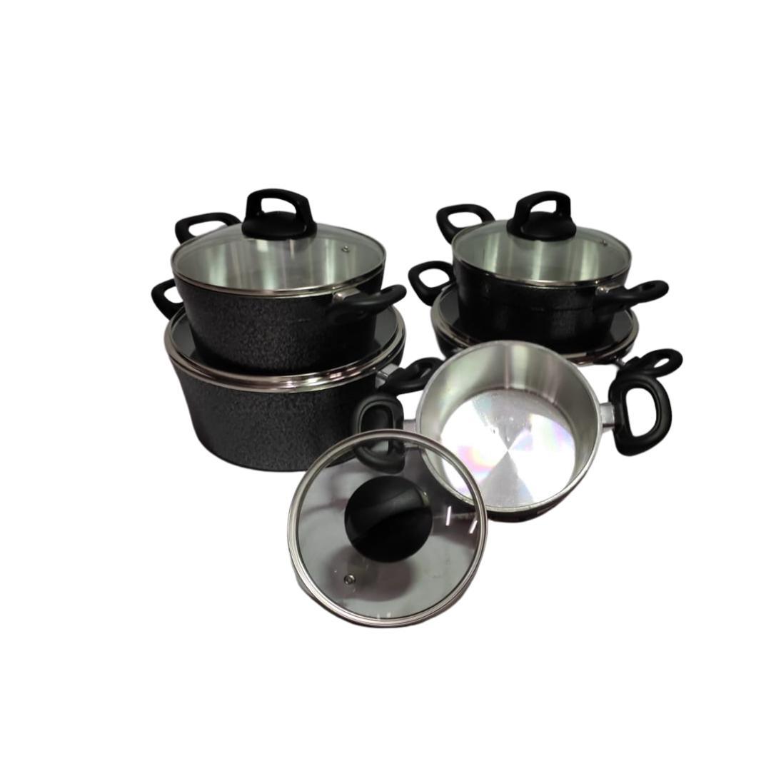 Composto Por 5 Peças Em Alumínio Fundido Com Tampas De Vidro Garantindo Durabilidade E Vantagens Na Hora De Cozinhar.