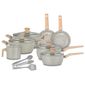 O Kit Inclui Uma Variedade De Peças Funcionais Para Diferentes Tipos De Receitas: Duas Caçarolas Com Tampa, Duas Panelas Com Tampa, Uma Leiteira, Duas Frigideiras E Três Utensílios Em Silicone Colher, Espátula E Pegador Que Preservam O Revestimento Das Peças. Com Um Design Moderno E Acabamento Marmorizado Em Cores Sofisticadas, O Conjunto Também Valoriza A Decoração Da Cozinha.