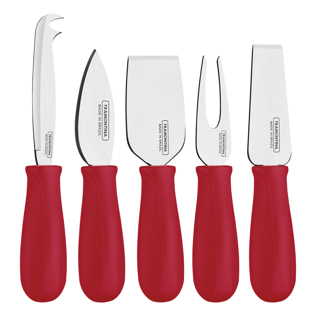 Jogo Para Queijos Tramontina Harmoniza Com Lâminas Em Aço Inox E Cabos De Polipropileno Vermelho 5 Peças
