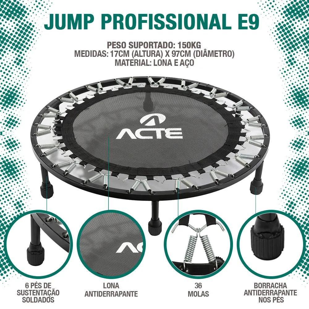 Características: O Trampolim Jump Profissional E9 Da Acte Sports Oferece Uma Estrutura Resistente, Suportando Até 150kg. Com 36 Molas, Proporciona Firmeza E Segurança Durante O Exercício, Ideal Para Quem Busca Tonificar A Musculatura E Melhorar O Equilíbrio Em Atividades De Alto Gasto Calórico.