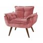 Poltrona Opala agrega beleza e conforto. Produto com design moderno e luxuoso. Fabricada com produtos de altíssima qualidade, composto por pés quadrado de madeira de eucalipto, percinta elástica, grampo em aço galvanizado, assento com fibra de silicone, o encosto e braça com fibra de silicone e espuma densidade D-18, para dispor o melhor conforto possível, estrutura em madeiras eucalipto.