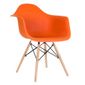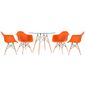 CADEIRAS: Cadeira modelo Eames DAW: Material do assento: Polipropileno - Material da base: Madeira e aço - Altura do encosto: 79,5 cm - Altura do assento: 44 cm - Altura dos braços: 67 cm - Largura total: 62 cm - Peso suportado: 100 kg. MESA: Material do tampo: Vidro incolor temperado 8 mm - Material da base: Madeira e aço - Altura: 75 cm - Diâmetro do tampo: 100 cm - Garantia: 3 meses.