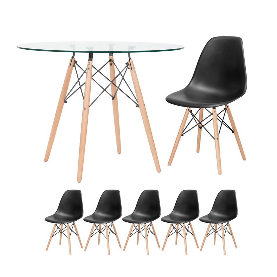 MóveisQuartoCadeira de QuartoKIT - Mesa de vidro Eames 100 cm + 5 cadeiras Eiffel DSW preto