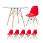 KIT - Mesa de vidro Eames 100 cm + 5 cadeiras Eiffel DSW vermelho