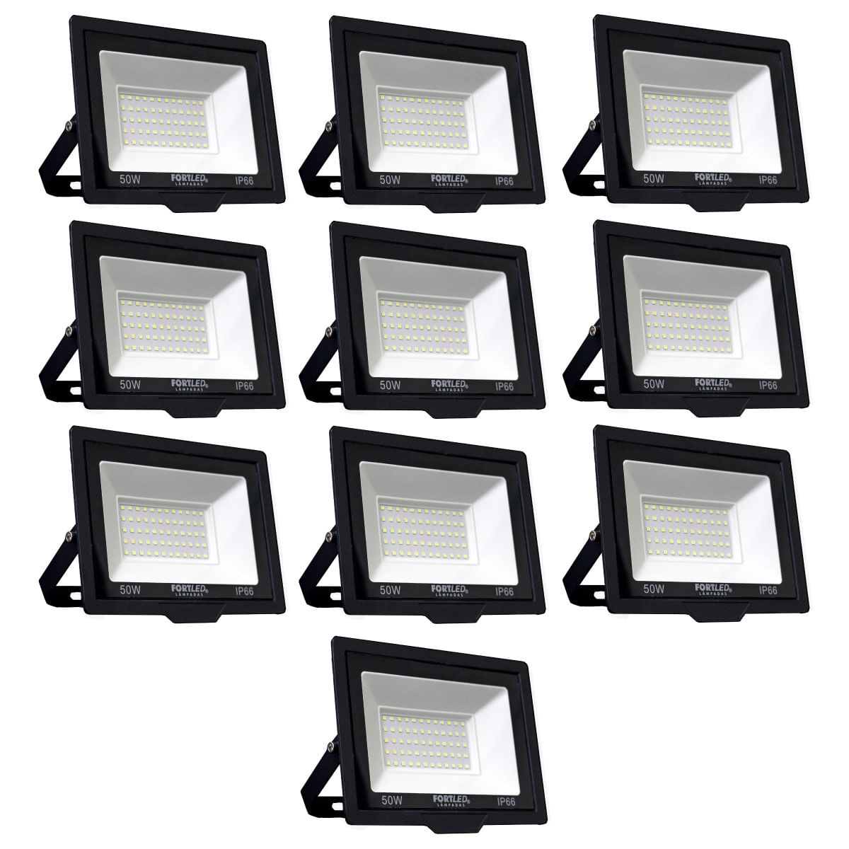 KIT 10 Refletores de LED 50W Fortled