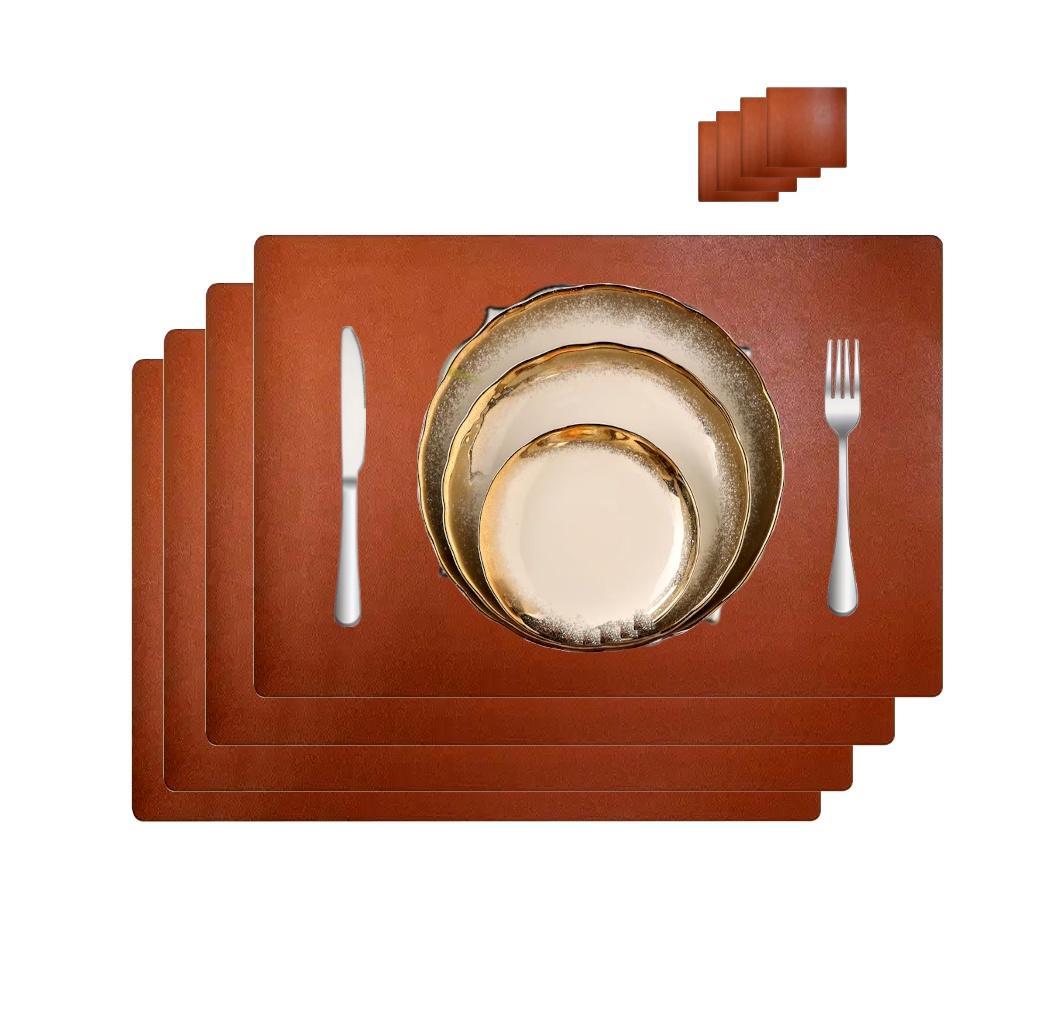 Jogo Americano Couro (retangular) + Porta Copos