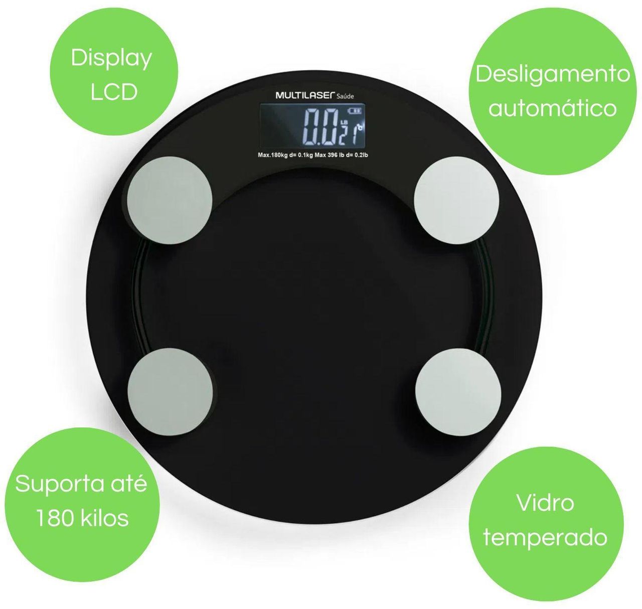 Kit 2 Balança Digital Corporal Ate 180kg Precisão Multilaser Base De Vidro Temperado Crossfit Banheiro Academia Visor