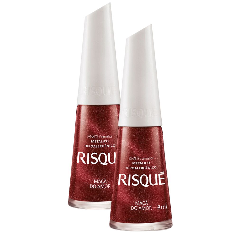 Kit 2 Esmalte Risqué Cor Maçã Do Amor Hipoalergênico Metálico Com 8ml